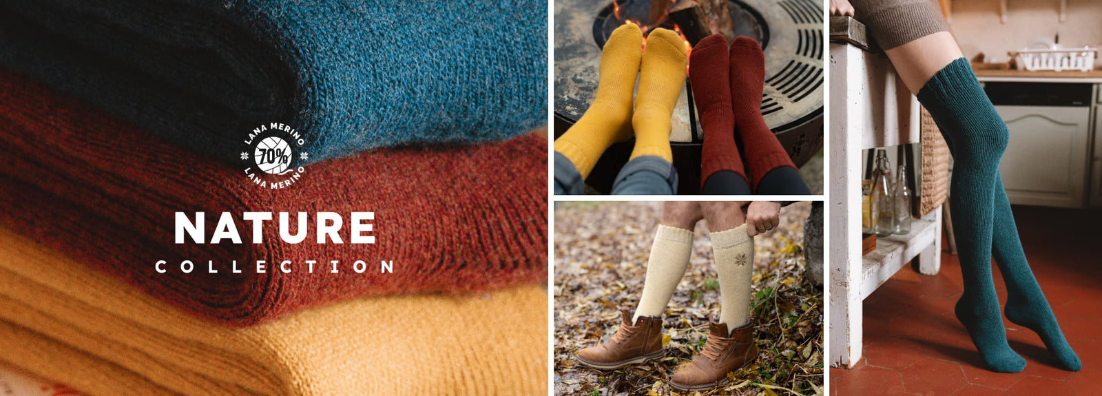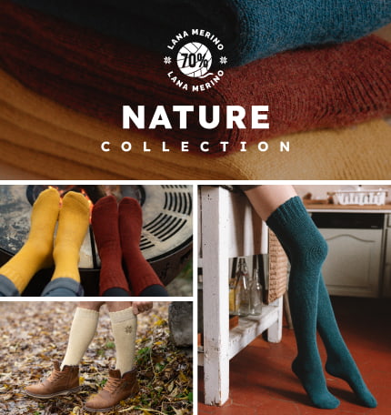 I nostri calzini della Nature Collection sono realizzati con il 70% di lana Merino, che offre comfort e durata eccezionali.
